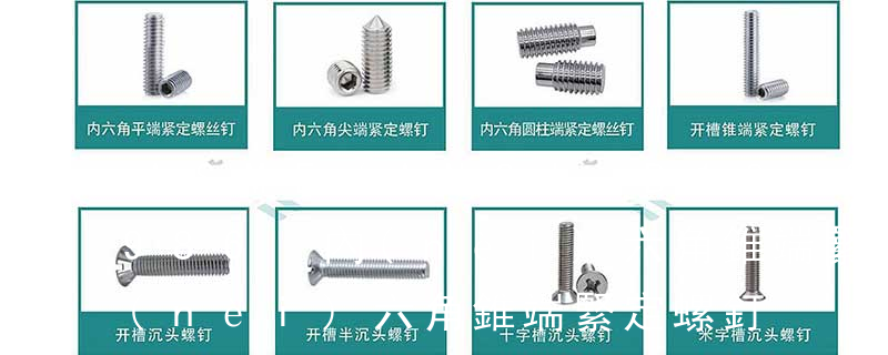 內(nèi)六角圓柱頭螺釘 鋼、不銹鋼 鍍鋅鈍化或不經(jīng)處理 GB/T70.2-2000 內(nèi)六角平圓頭螺釘 鋼、不銹鋼 鍍鋅鈍化或不經(jīng)處理 GB/T70.3-2000 內(nèi)六角沉頭螺釘 鋼、不銹鋼 鍍鋅鈍化或不經(jīng)處理 GB/T71- 1985 開槽錐端緊定螺釘 鋼 GB/T 78-2007內(nèi)六角錐端緊定螺釘 GB/T 79-2007內(nèi)六角圓柱端緊定螺釘 GB/T 80-2007內(nèi)六角凹端緊定螺釘 GB/T 821-1988方頭倒角端緊定螺釘 GB/T 83-1988方頭長圓柱球面端緊定螺釘 GB/T 84-1988方頭凹端緊定
